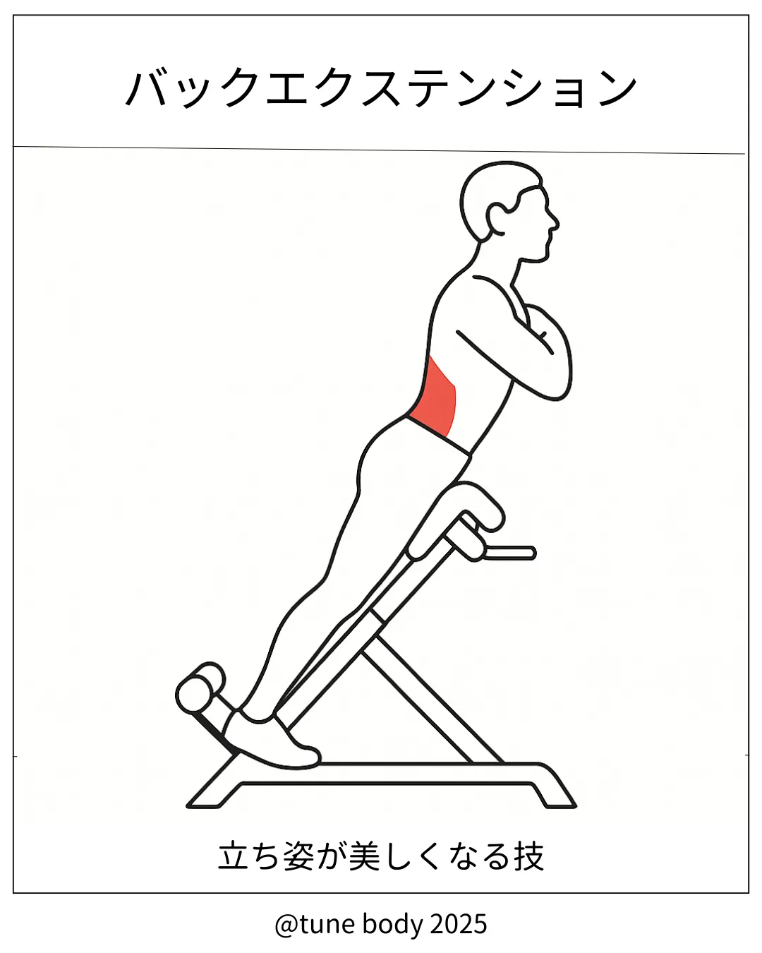 鍛える主な筋肉脊柱起立筋(メイン)大臀筋・ハムストリング(補助)→“姿勢を支える背面の要”を強化し、腰の安定性UP・猫背改善にも◎トレーニング方法(基本フォーム)ハイパーエクステンション台にセッ…