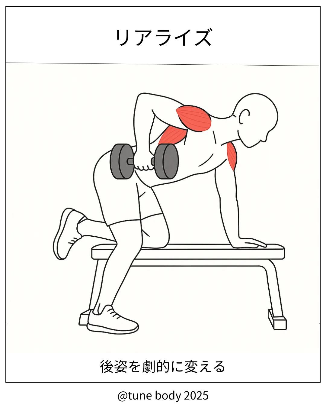 - ダンベルリアレイズ